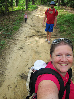 We even had room for luxury's! A small folding camp chair each and even a pillow for Mama! Whoo Hoo! Ohh and a few pacifiers just to be safe! :-) And a kindle for each of the grownups! Reading is an important part of nature in this family!